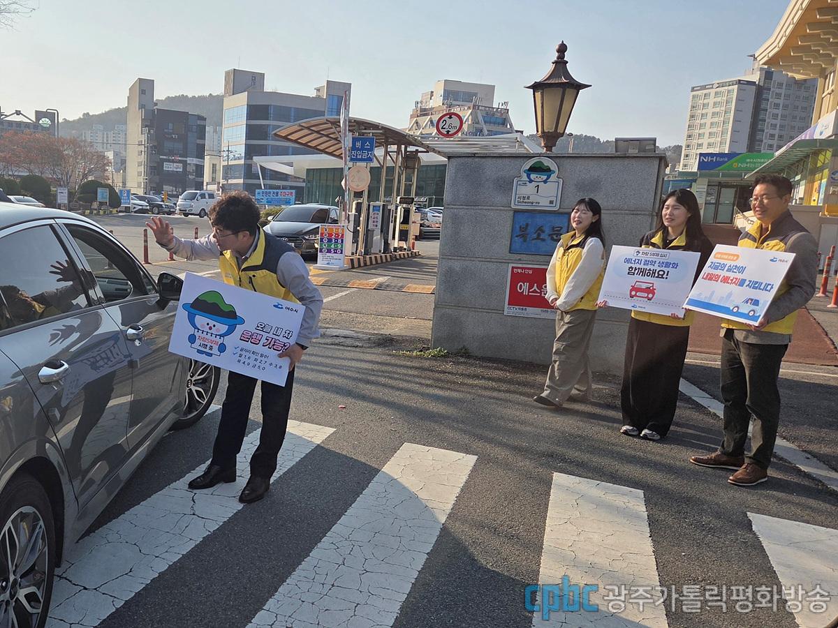 공공기관 공무원들이 차량 5부제 참여를 독려하는 캠페인을 벌이고 있다. 정부는 오는 8일부터 2부제를 시행할 예정이다.<사진제공=여수시>